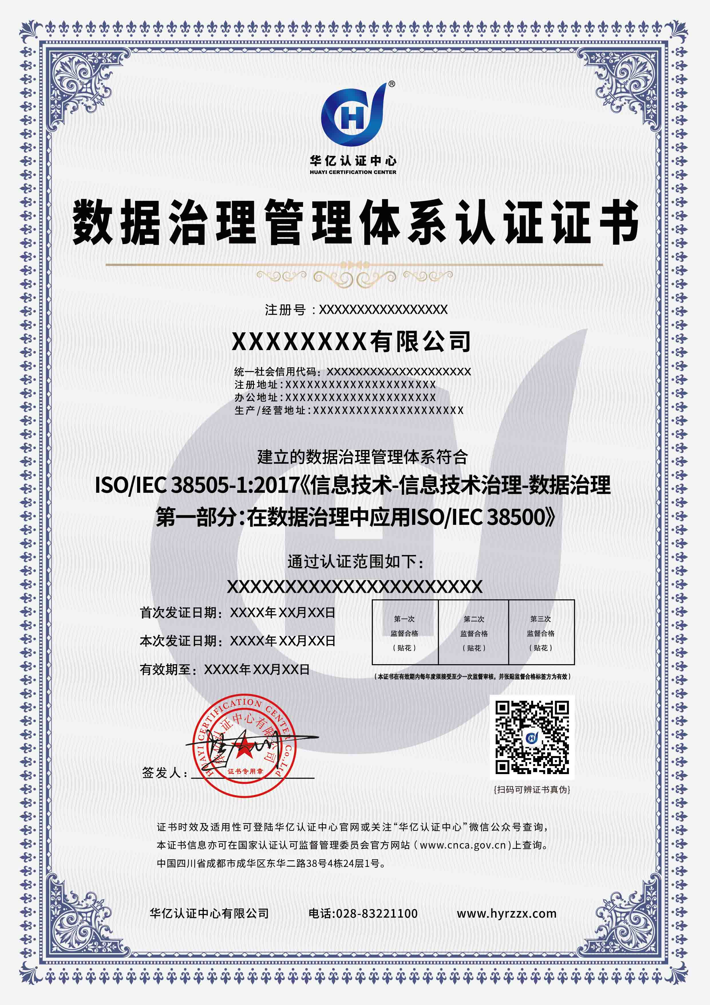数据治理管理体系认证证书